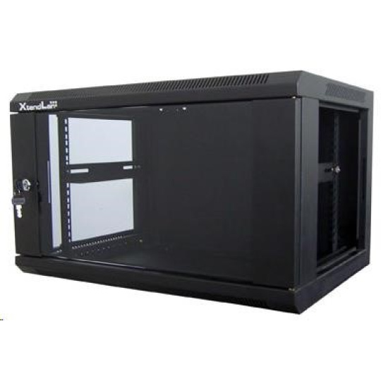 XtendLan 19" nástěnný rozvaděč 6U 600x600, nosnost 60 kg, skleněné kouřové dveře, svařovaný, černý
