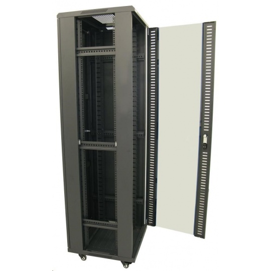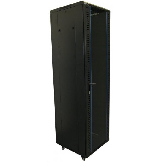 XtendLan 19" stojanový rozvaděč 42U 600x800, nosnost 500kg, skleněné dveře, plná záda, kolečka,černý