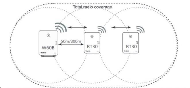 Opakovač je vhodný na rozšírenie pokrytia existujúcej alebo novej siete DECT.k jednej základni možno pripojiť až 6 opakovačov a v spojení s W60B podporuje kaskádovanie dvoch RT30. Na opakovači je možné uskutočniť 2 súčasné hovory. opakovač Yealink RT30 je vybavený tromi LED diódami na okamžité zistenie stavu. Dosah signálu DECT do 50 m v interiéri a do 300 m vonku. Napájací adaptér 5 V DC, 0,6A je súčasťou balenia...