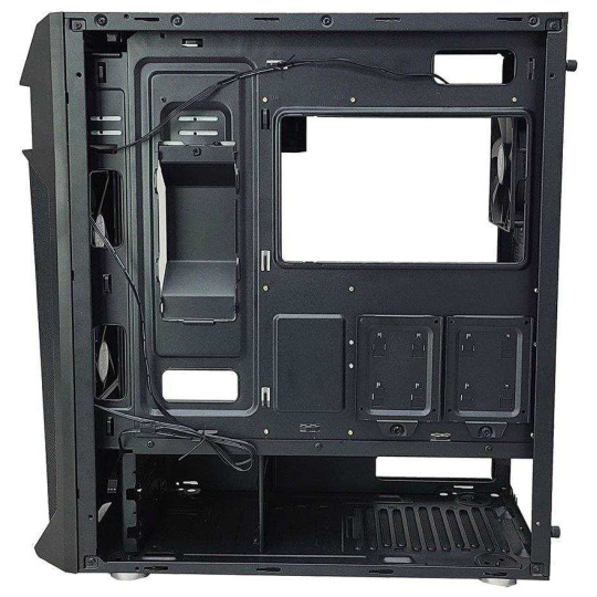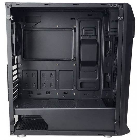 Kvalitná počítačová skriňa Middle Tower ponúka tri 2,5" pozície pre disky SSD a dve 3,5" pozície pre pevné disky. Tri 120 mm ventilátory sú predinštalované. Na hornom paneli sú dva porty USB 3.0, jeden USB 2.0, výstup na slúchadlá a zvukový vstup pre mikrofón. V skrini je dostatok miesta pre chladič procesora s výškou až 163 mm a grafickú kartu s dĺžkou až 385 mm. Dômyselná konštrukcia umožňuje pohodlné umiestnenie až 280 mm dlhého výmenníka vodného chladenia na hornej strane. Skriňa je vybavená priehľadnou bočnicou. Poteší aj prítomnosť prachových filtrov. Skriňa sa dodáva bez napájania.
