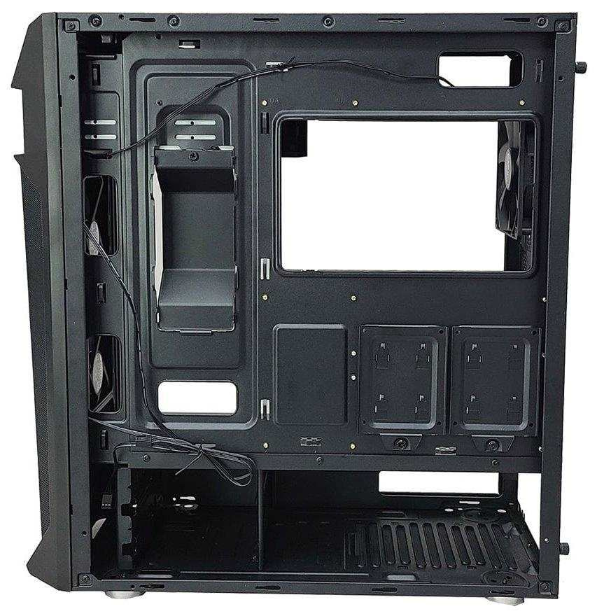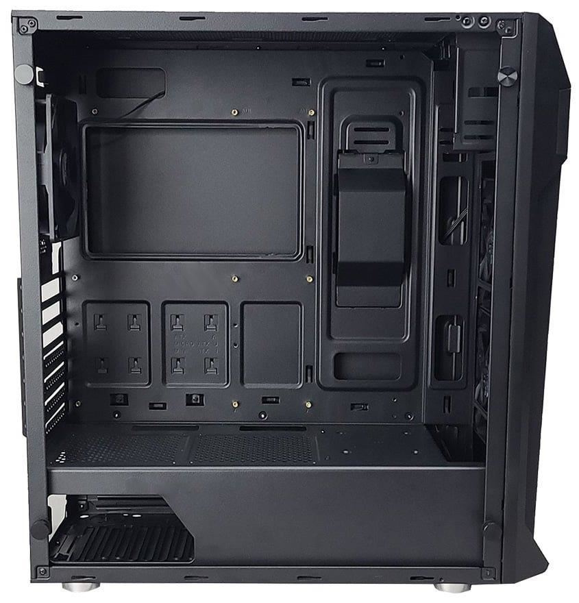 Kvalitná počítačová skriňa Middle Tower ponúka tri 2,5" pozície pre disky SSD a dve 3,5" pozície pre pevné disky. Tri 120 mm ventilátory sú predinštalované. Na hornom paneli sú dva porty USB 3.0, jeden USB 2.0, výstup na slúchadlá a zvukový vstup pre mikrofón. V skrini je dostatok miesta pre chladič procesora s výškou až 163 mm a grafickú kartu s dĺžkou až 385 mm. Dômyselná konštrukcia umožňuje pohodlné umiestnenie až 280 mm dlhého výmenníka vodného chladenia na hornej strane. Skriňa je vybavená priehľadnou bočnicou. Poteší aj prítomnosť prachových filtrov. Skriňa sa dodáva bez napájania.