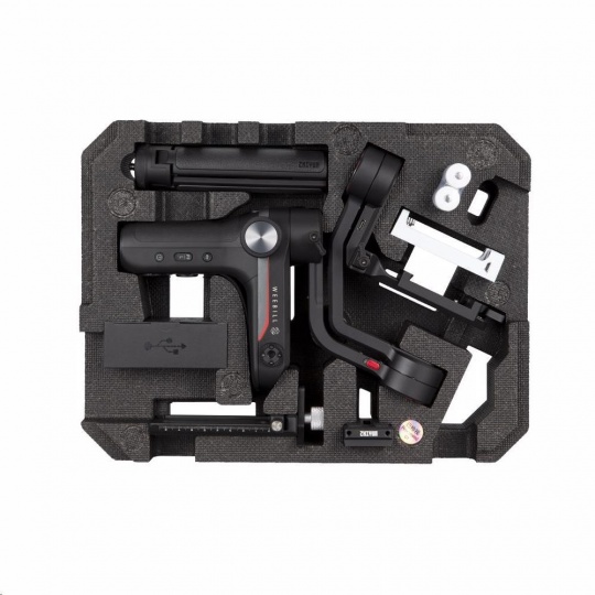 Stabilizátor Weebill S je vybavený robustnou pogumovanou rukoväťou so zabudovaným statívom, ktorý používateľom poskytuje vynikajúce pohodlie a veľkú všestrannosť. Najdôležitejší je nový vyvažovací systém 2.0, ktorý dostal nový dizajn zámku. Počas vyvažovania nastavíte naraz iba jednu os a ostatné dve necháte uzamknuté. Gimbal sa nekrúti, nehýbe a vyváženie je rýchle a jednoduché. Pri prenose stabilizátora sú zámky na nezaplatenie, keď sa zostatok v zloženom stave vôbec nepohybuje.