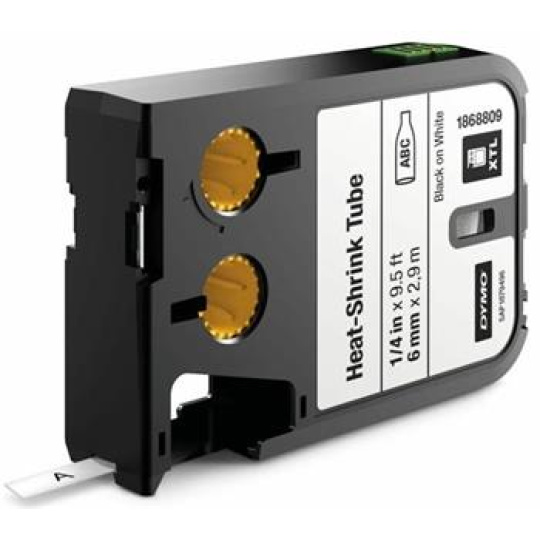 Zmršťovacia bužírka určená pre produkty DYMO XTL 6mm zmršťovacia bužírka 6 mm x 2,7 m čierne písmo, biela bužírka Heat-Shrink Tube Len pre zariadenia XTL !!!!!