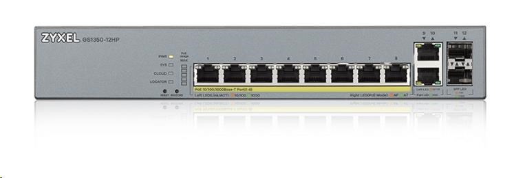 Zyxel GS1350-12HP 12portový inteligentný spravovaný CCTV PoE switch, dlhý dosah, 130W, 10x GbE, 2x SFP