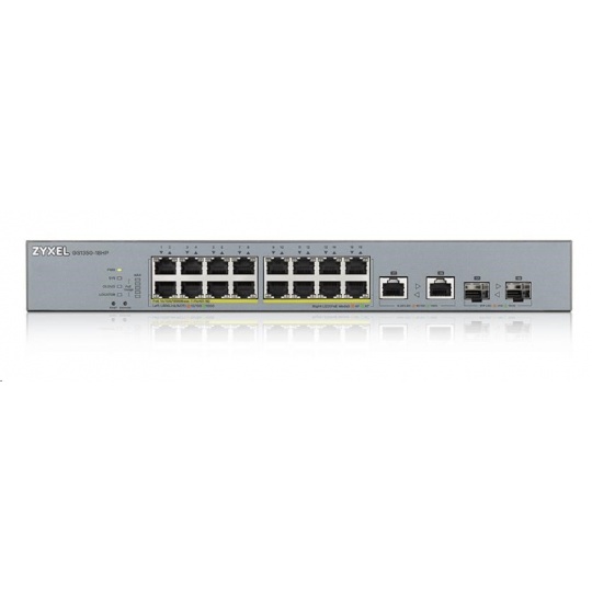 Zyxel GS1350-18HP 18portový inteligentný spravovaný CCTV PoE switch, dlhý dosah, 250W, 16x GbE, 2x combo RJ45/SFP