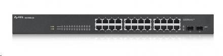Zyxel GS1900-24 v2 26portový gigabitový webový inteligentný prepínač, 24x gigabitový RJ45, 2x SFP, bez ventilátora