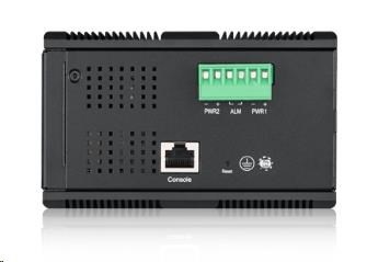 12-portový gigabitový WebManaged switch: 8x GbE + 4x SFP, PoE (802.3at, 30 W), rozpočet výkonu 240 W, montáž na DIN lištu/nástennú montáž, napájanie IP30 len pomocou priemyselného zdroja..